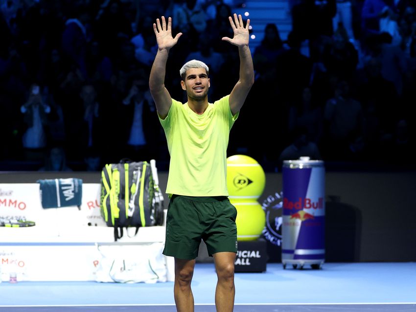 ラウンドロビン3連勝で3年ぶり2度目の年末世界ナンバーワンと決勝トーナメント進出を決めたカルロス・アルカラス(スペイン)(Getty Images)