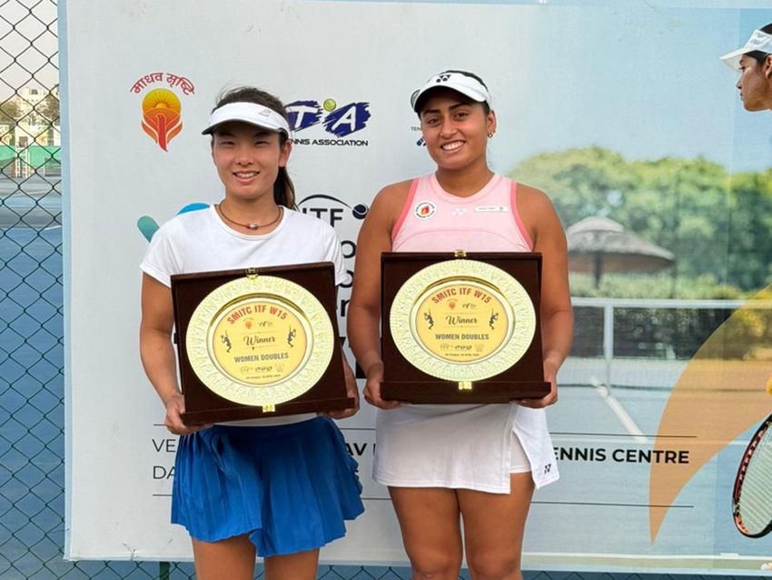 女子ダブルスで優勝を飾ったアカンクシャ・ディレープ ナイトチャー(インド/右)と小関みちか(橋本総業ホールディングス)(写真提供◎小関みちか:橋本総業ホールディングス所属)