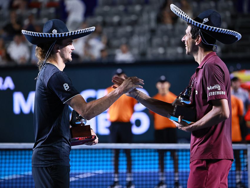 ACAPULCO, MEXICO - FEBRUARY 28: Alexander Zverev of Germany and Marcelo Melo of Brazil celebrate at the trophy ceremony after defeating Robert Galloway of USA and Alexander Erler of Austria in the Men's Doubles Final of the Telcel ATP 500 Mexican Open 2026 at Arena GNP Seguros on February 28, 2026 in Acapulco, Mexico. (Photo by Manuel Velasquez/Getty Images)