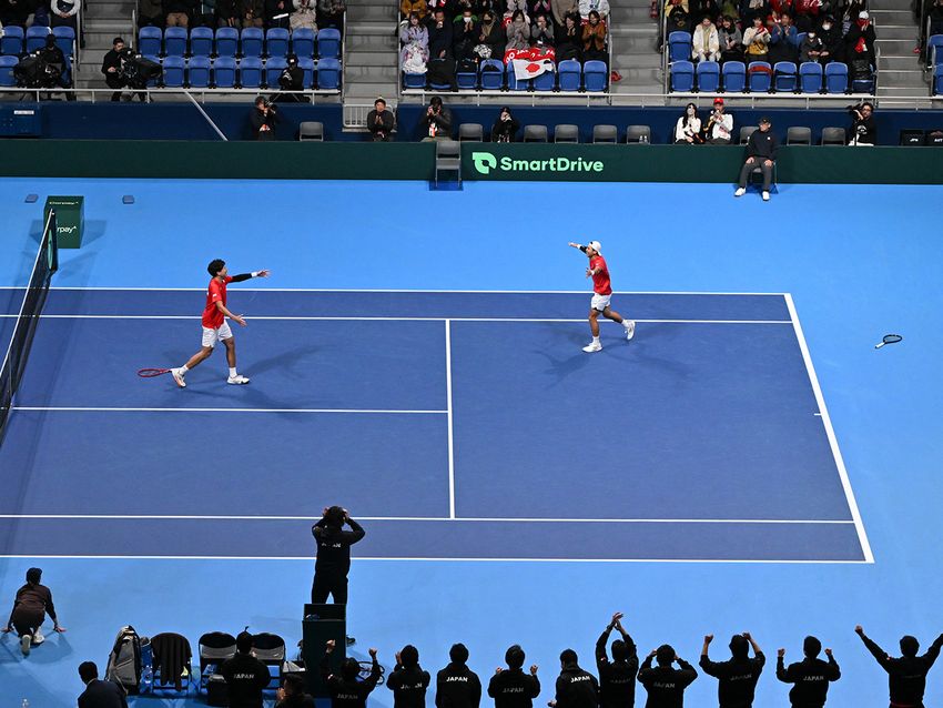 接戦を制した綿貫陽介/柚木武が代表戦のダブルス初勝利で日本が予選2回戦進出に王手 [デビスカップ日本対オーストリア]