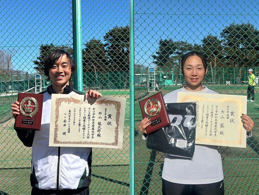 シングルスは外山龍太郎(東北大2年)と大山藍(東北学院大1年)が優勝、大山は単複2冠 [R7東北学生新進戦]