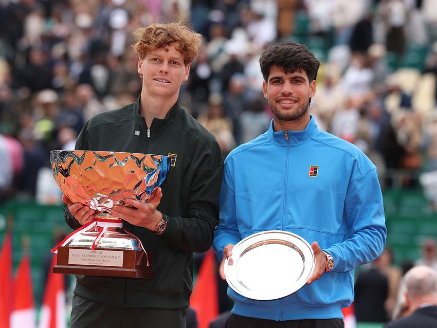 「ロレックス・モンテカルロ・マスターズ」(モナコ・モンテカルロ)で大会初優勝を飾ったヤニク・シナー(イタリア/左)と準優勝のカルロス・アルカラス(スペイン)(Getty Images)