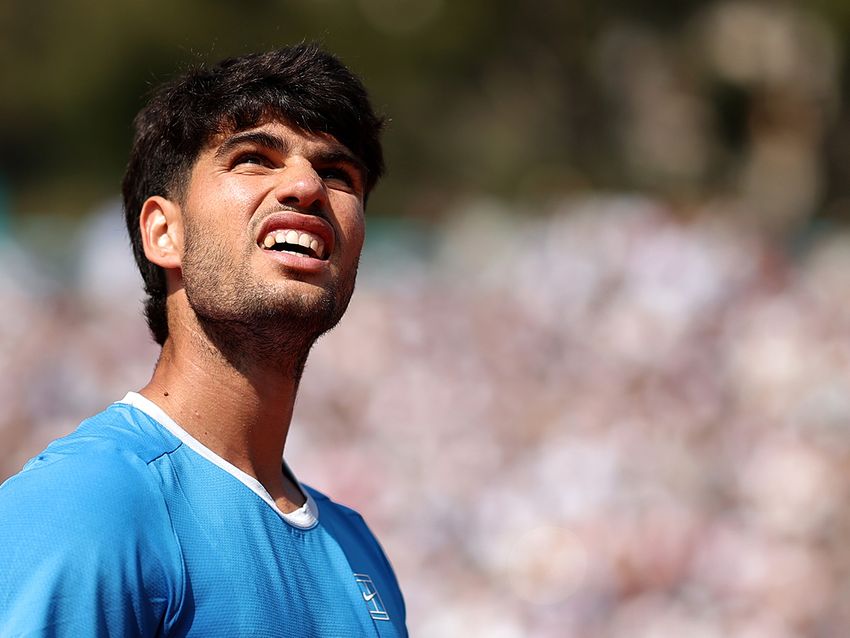 写真はロレックス・モンテカルロ・マスターズでのカルロス・アルカラス(スペイン)(Getty Images)