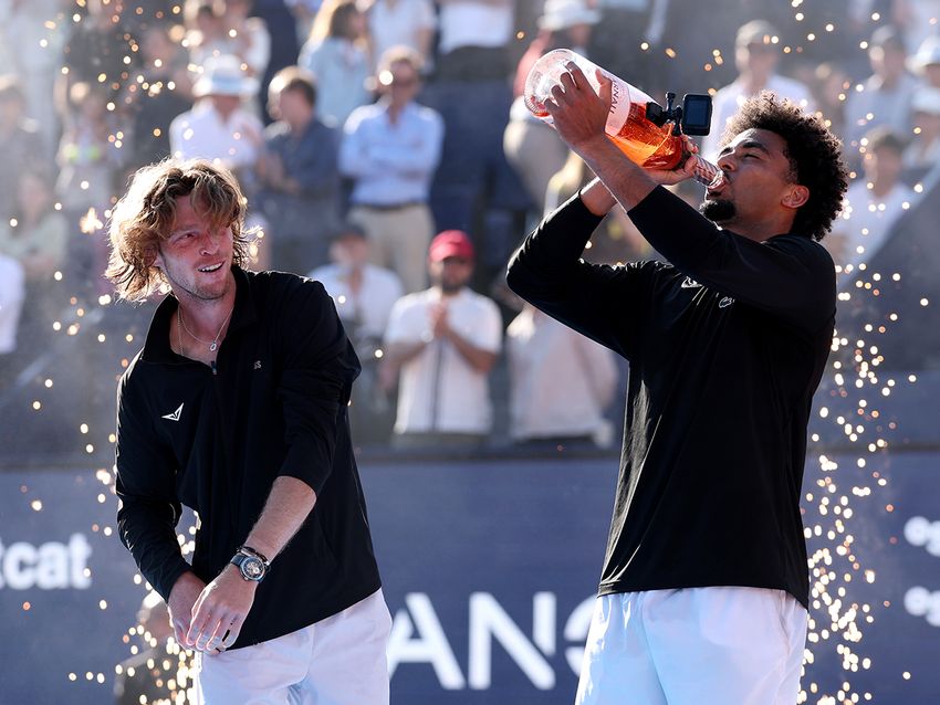 「バルセロナ・オープン・バンコサバデル」(スペイン・バルセロナ)で2024年10月以来のツアー4勝目を挙げたアルトゥール・フィス(フランス/右)と準優勝のアンドレイ・ルブレフ(ロシア)(Getty Images)